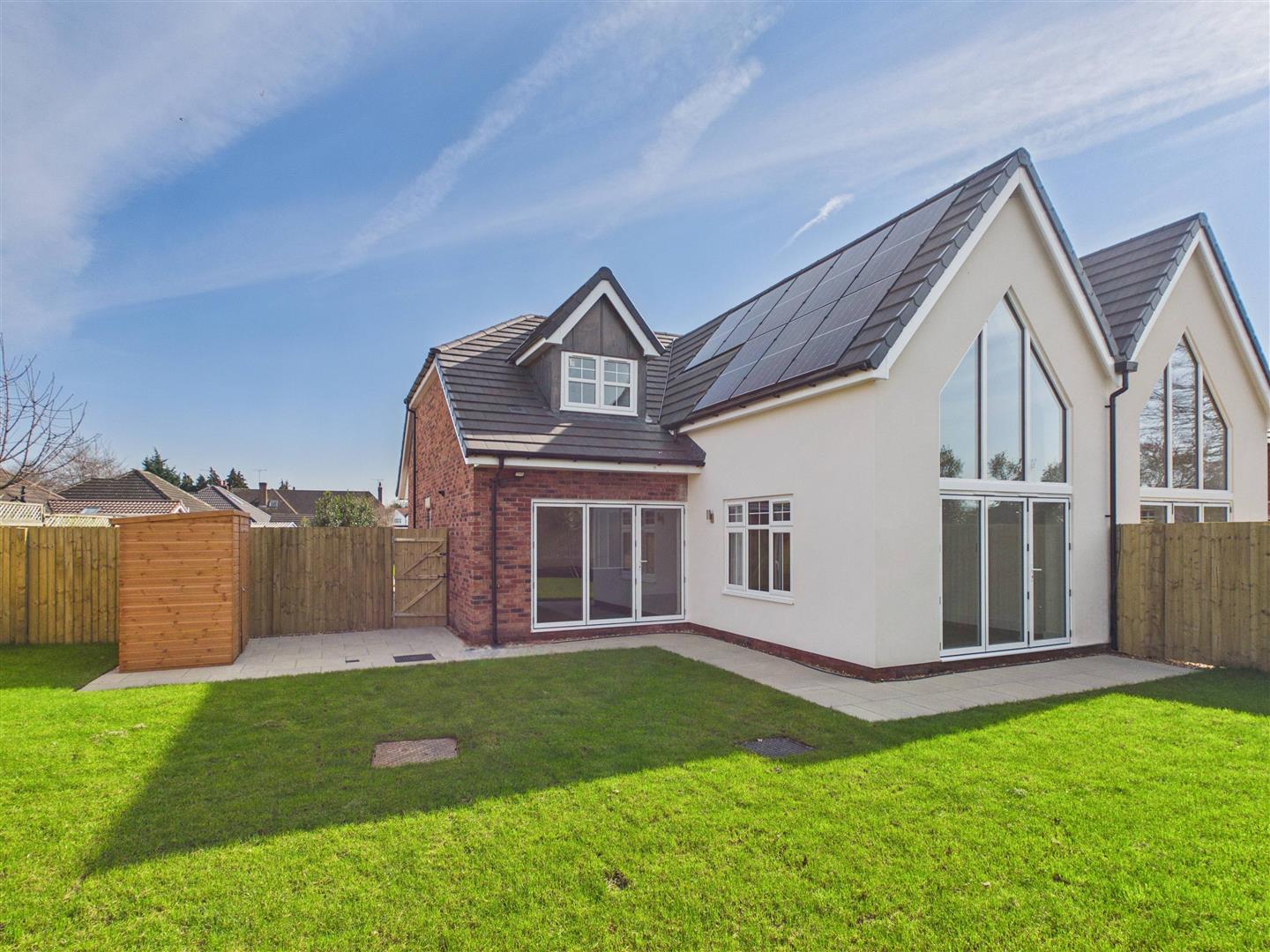 A beautiful three bedroom semi-detached dormer bungalow. This spacious property comprises a large open plan kitchen/ living/ dining room with double-height vaulted ceiling with a striking full-height triangular feature window with Bi folding doors leading out to the patio and garden. There are two double bedrooms and a large bathroom downstairs. Upstairs there is the principal bedroom suite with large en-suite bathroom and a spacious landing office/reading area.