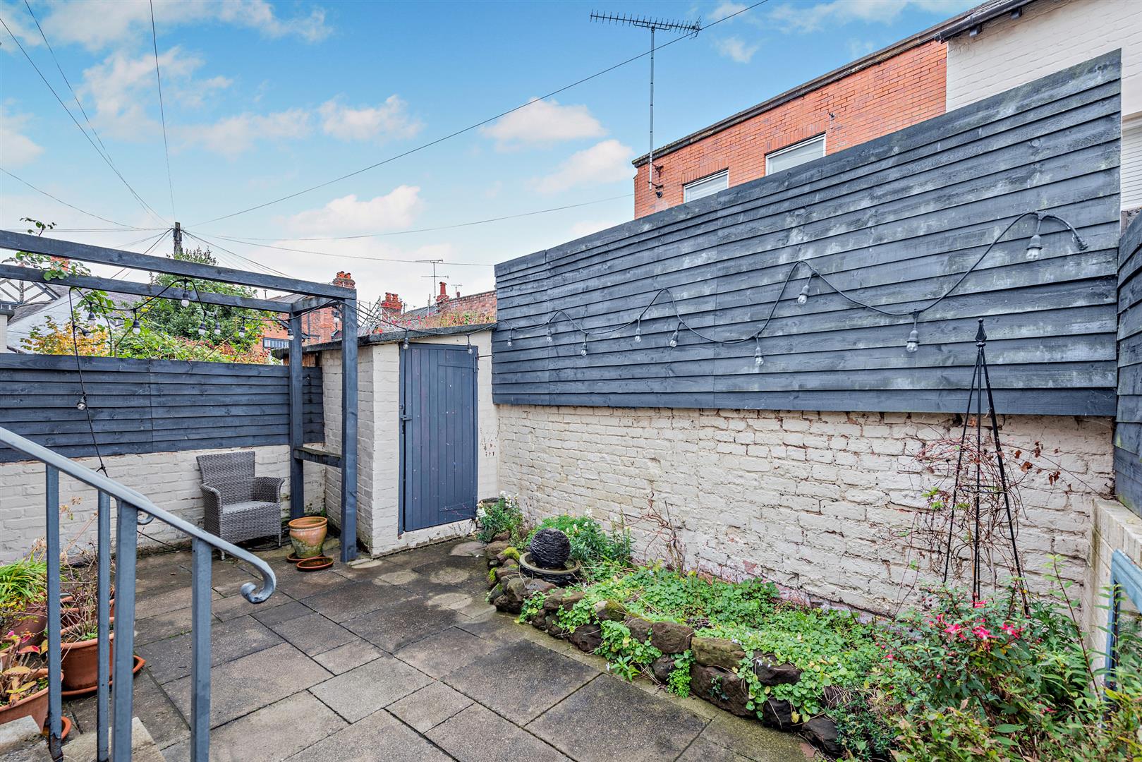 There is a rear South facing courtyard garden featuring a paved patio, raised planting beds and a useful brick-built store and secure gated side access. The property benefits from an allocated parking space in the adjacent private car park—a valuable benefit in such a central location.