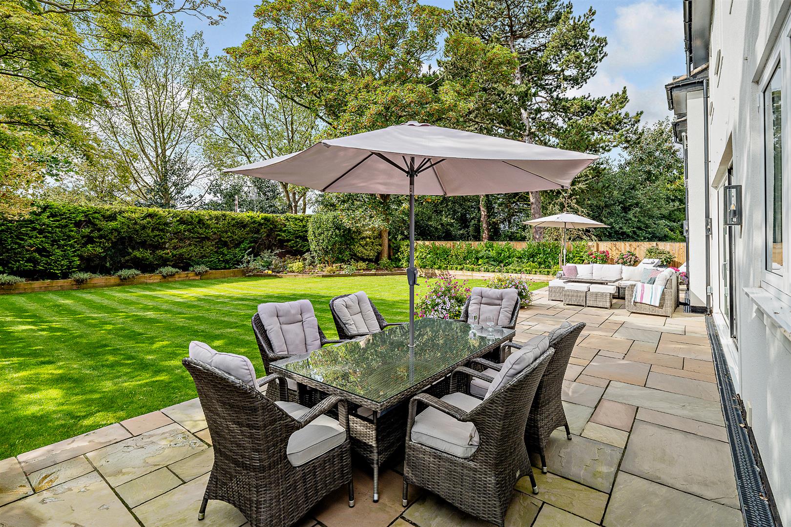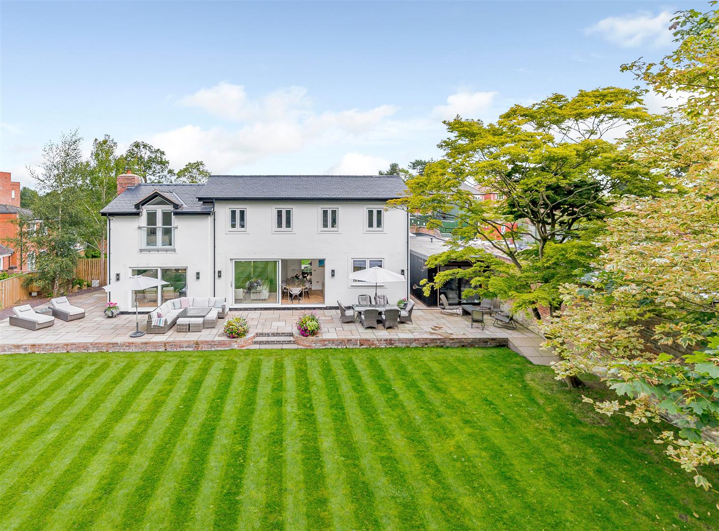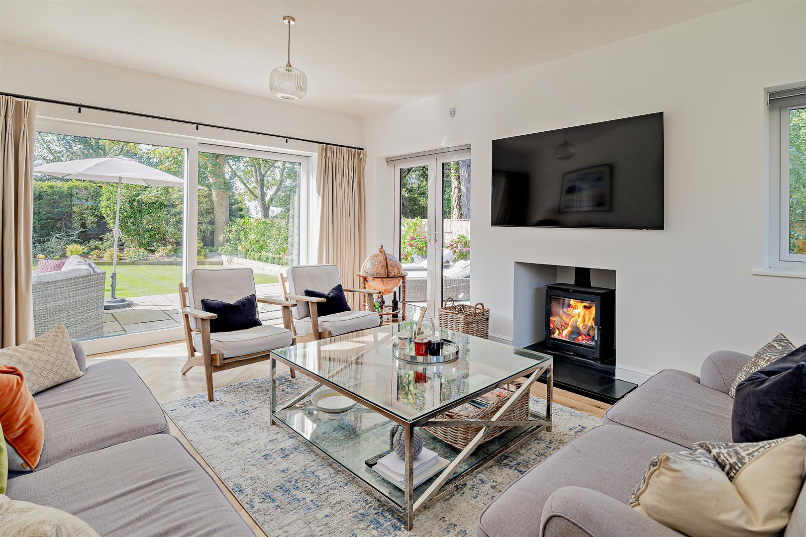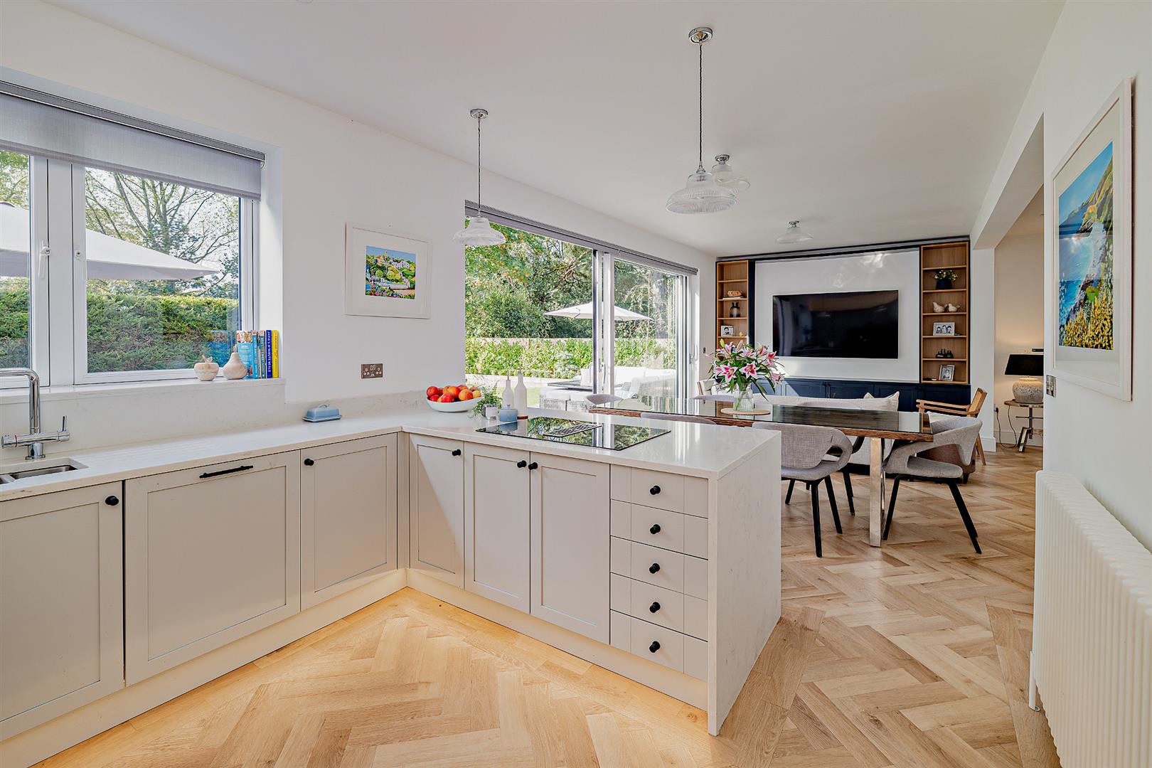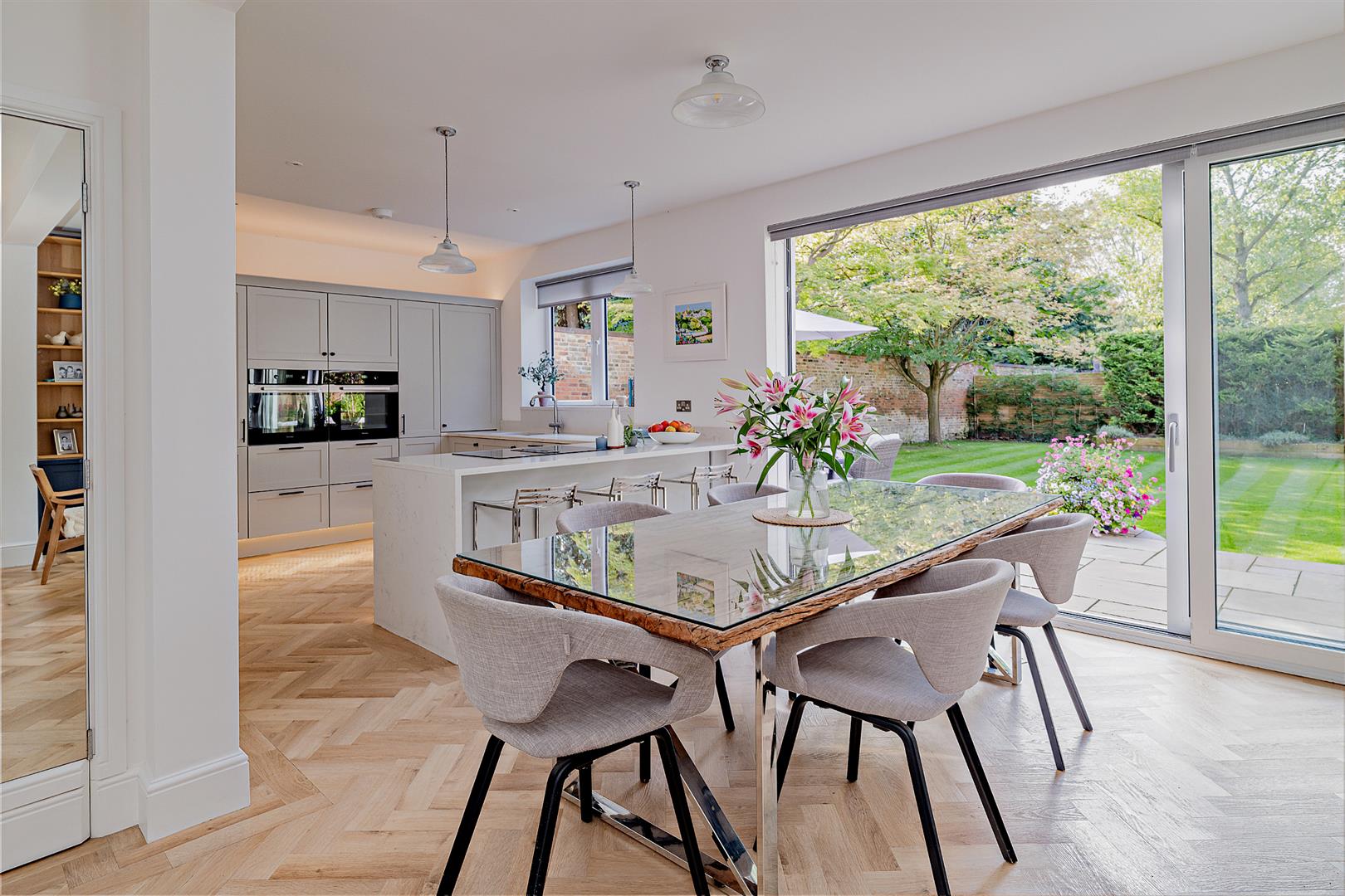 • Impressive open-plan kitchen/dining/living space with doors opening onto the patio and garden