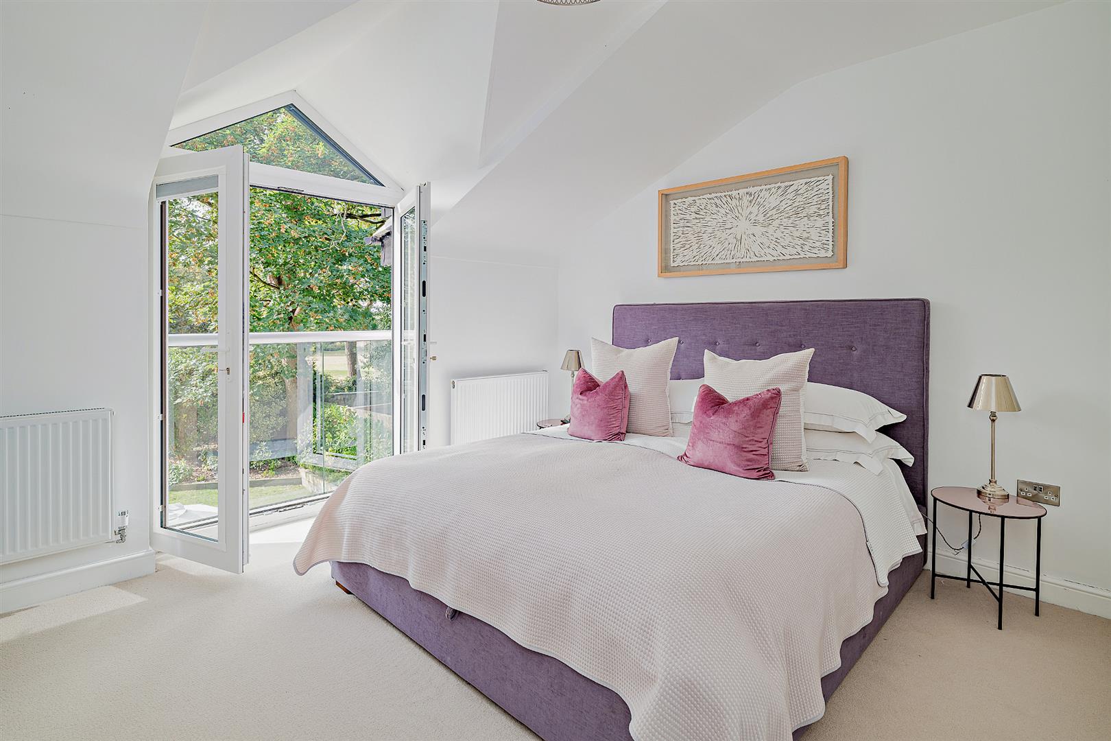 The generous open-plan layout features a beautifully designed kitchen with sleek fixtures and integrated appliances, seamlessly flowing into the dining/living areas with sliding doors opening out to the patio and gardens providing an abundance of natural light. There is a separate sitting room with a log burning stove, a utility room featuring a laundry chute, separate office and downstairs W.C. The main house boasts four well-proportioned double bedrooms with fitted wardrobes. Two of the bedrooms are complemented with stylish and newly finished en-suite shower rooms and the principal bedroom enjoys a Juliet balcony. There is a family bathroom with a separate shower and bath.