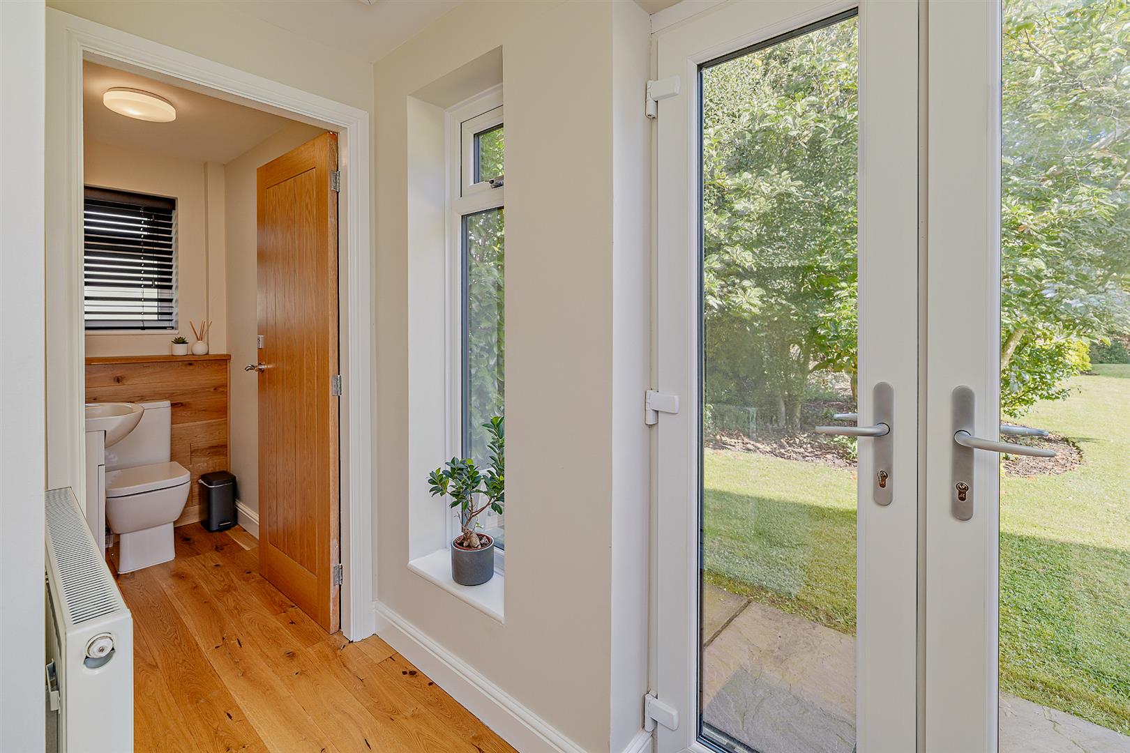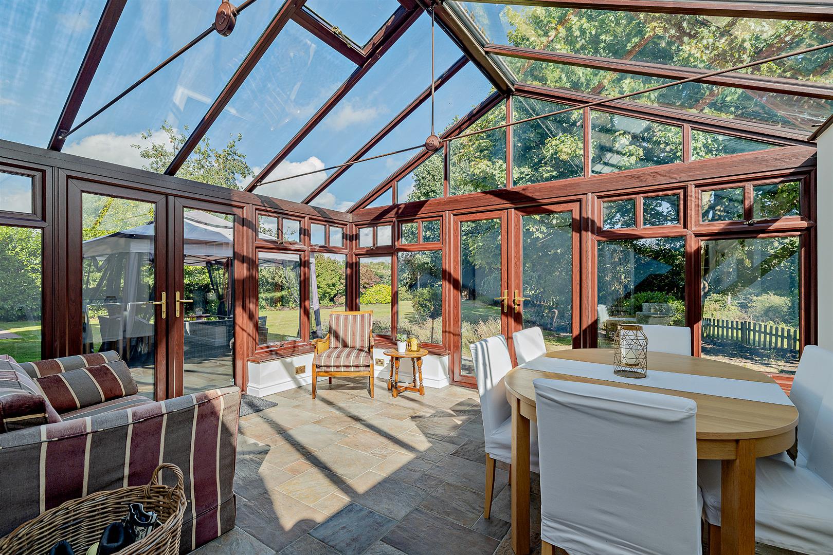 The rear gardens of the property are beautifully landscaped with fruit trees, flowering borders, and a dedicated vegetable garden with raised beds and a greenhouse. A generous patio area enjoys open countryside views across the land and beyond. There is a gravel path leading to the gated access to the additional acreage.