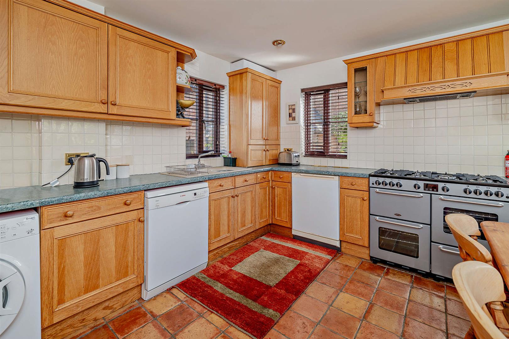 At the heart of the home is a charming farmhouse-style kitchen featuring an AGA set in a brick surround. Off the kitchen is a large utility room and an additional reception room, ideal for use as a dining room or snug, complete with a second wood-burning stove. A secondary staircase provides access to the first floor.