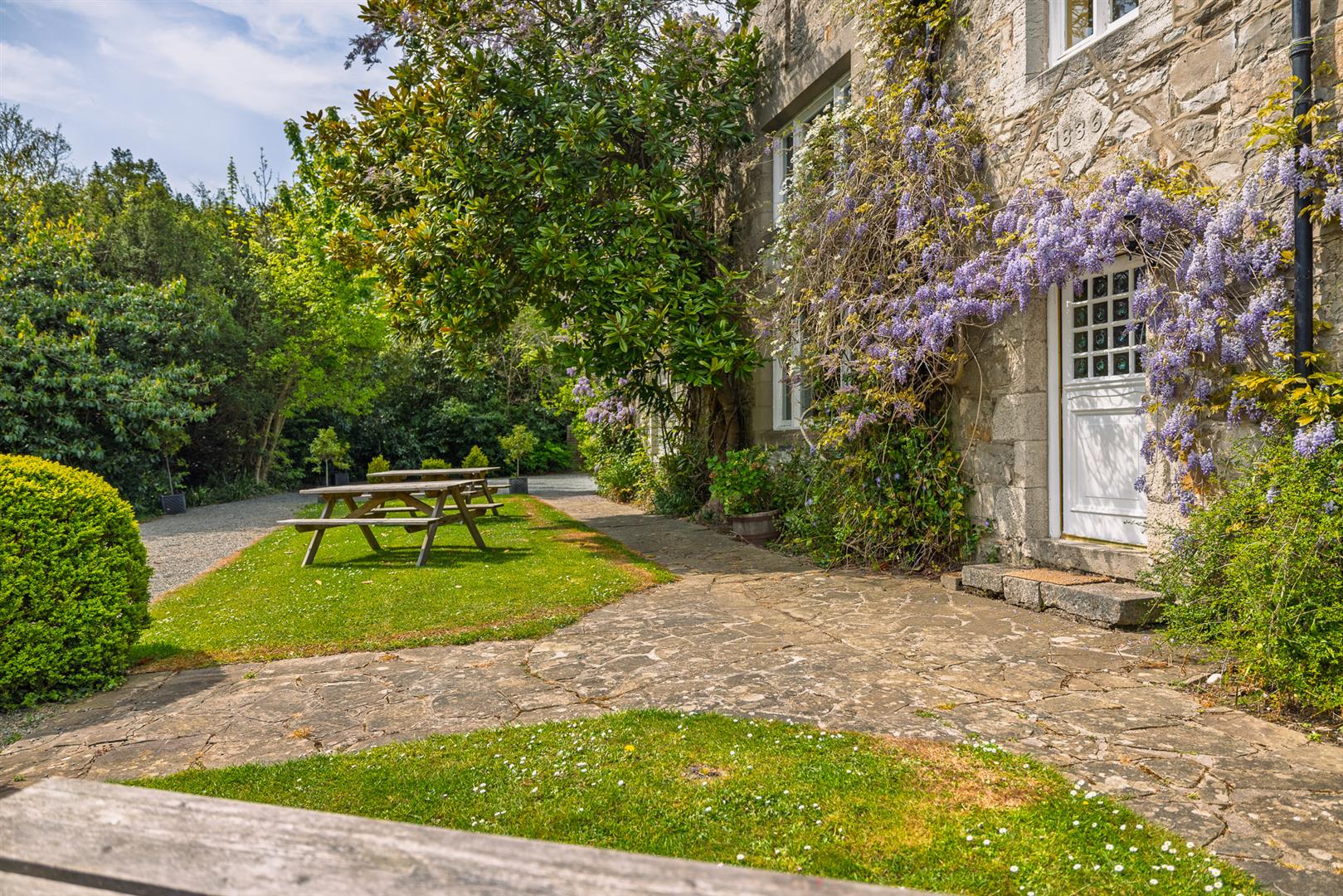 The main residence, Ty Mawr, includes a large mown garden—ideal for marquee events—while each cottage enjoys its own private garden. Additional features include a tennis court, enchanting bluebell woods, and an abundance of woodland trails teeming with birds and wildlife, from buzzards to occasional sightings of red squirrels.