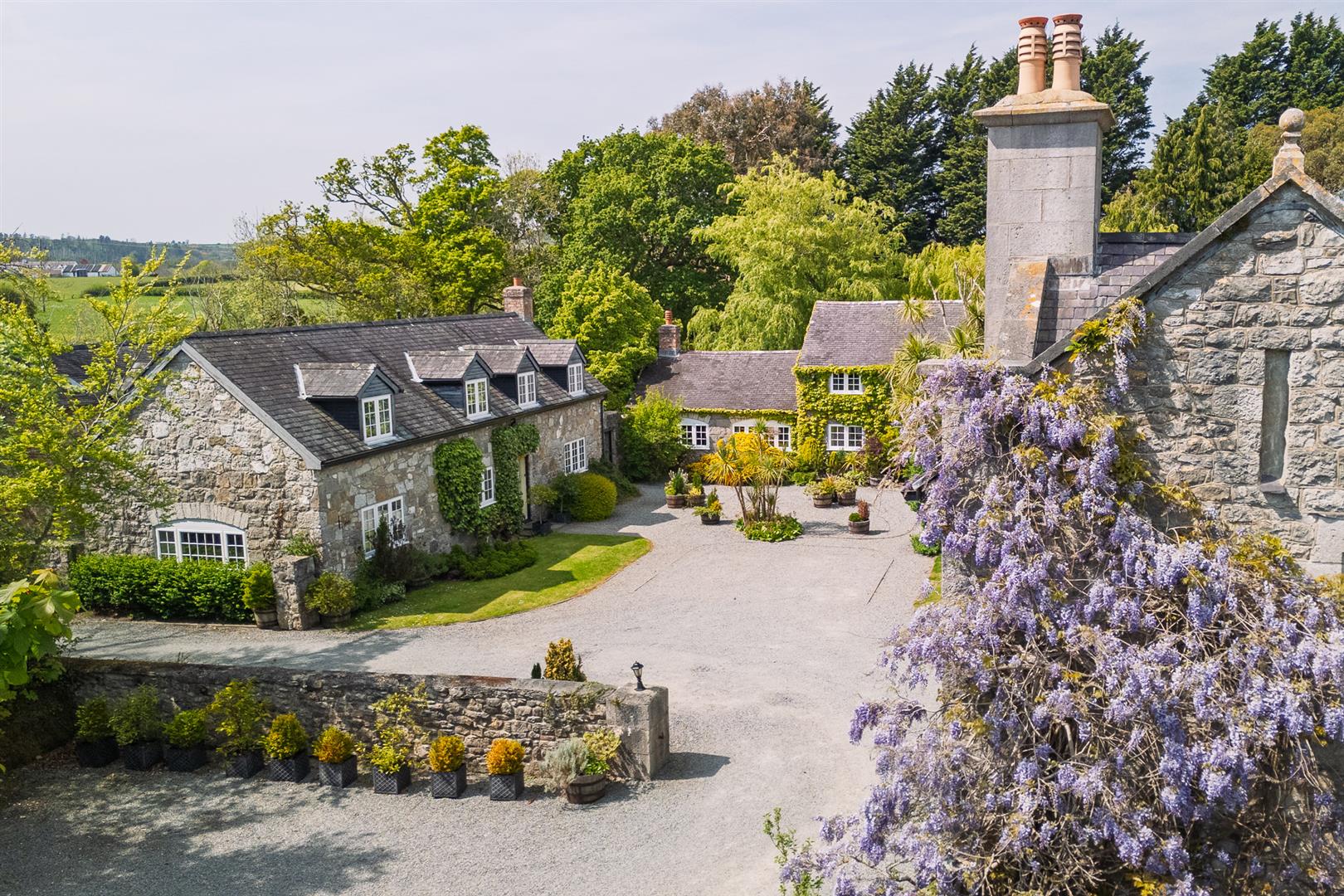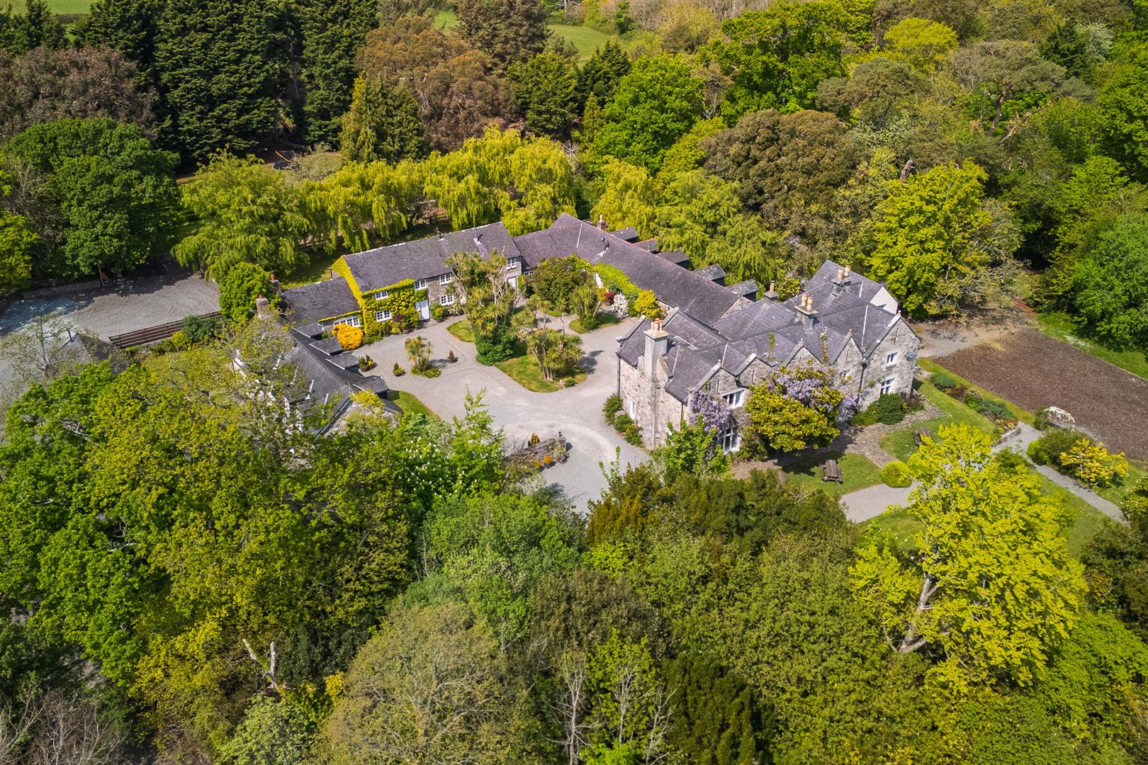 Tros-yr-Afon is a truly exceptional country estate, steeped in history and framed by breathtaking natural beauty. Set within approximately 8 acres of landscaped gardens and mature woodland, this remarkable property lies just moments from the charming coastal town of Beaumaris on the Isle of Anglesey. With its classic 19th-century architecture, idyllic courtyard, and sweeping countryside views extending towards the Menai Strait, Tros-yr-Afon offers a rare opportunity to acquire a property that is as versatile as it is beautiful.